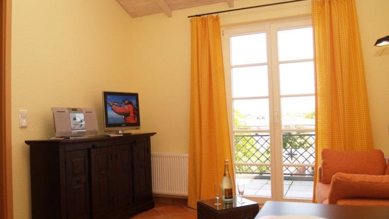 Die große Ferienwohnung bietet Platz für insgesamt 5 Personen. 2 Schlafzimmer mit Doppelbetten und Kleiderschränke, Essplatz auf der Galerie, offene Küche im Wohnbereich mit zwei Sofas und Fernseher. Die Wohnung hat einen schönen Balkon mit Blick Richtung Westen. Ein Duschbad vervollständigt die Wohnung. Zwei weitere Wohnungen können Sie über uns in dem Haus anmieten. Die Ferienwohnungen 22 und 23 sind jeweils für 2 Personen mit Wohnbereich mit Küche, separatem Schlafzimmer, Duschbad. Das Highlight sind in jeder Wohnung die Balkone die Richtung Osten über den Ort auf die blaue Ostsee blicken.