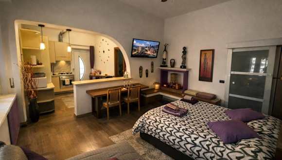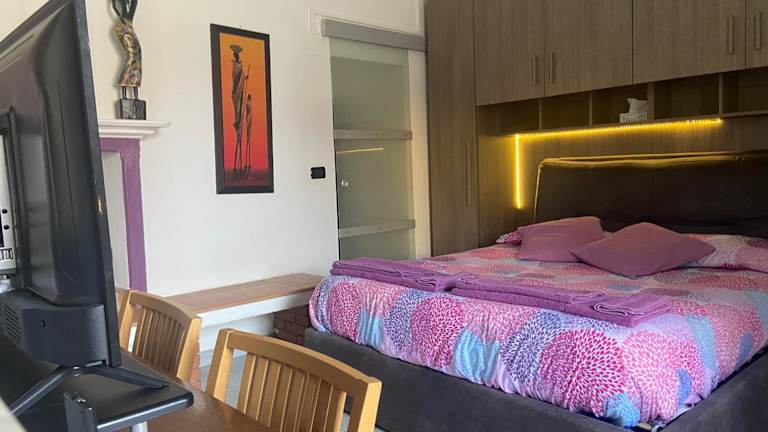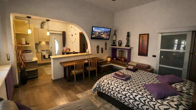 Das Apartment im Davide's House verfügt über ein komfortables Schlafzimmer, ein modernes Badezimmer und einen gemütlichen Essbereich. Die voll ausgestattete Küche bietet alle Annehmlichkeiten, die Gäste für einen angenehmen Aufenthalt benötigen. Das Apartment ist klimatisiert und verfügt über einen Flachbild-TV. Handtücher und Bettwäsche werden gestellt. Von der Terrasse aus können die Gäste den schönen Gartenblick genießen.