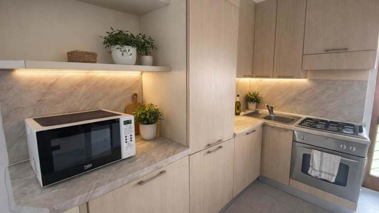 In der Unterkunft gibt es keine Verpflegungsmöglichkeiten, jedoch bietet die voll ausgestattete Küche im Apartment die Möglichkeit, eigene Mahlzeiten zuzubereiten. Alternativ gibt es in der Umgebung verschiedene Restaurants und Cafés, in denen die Gäste lokale und internationale Küche genießen können.