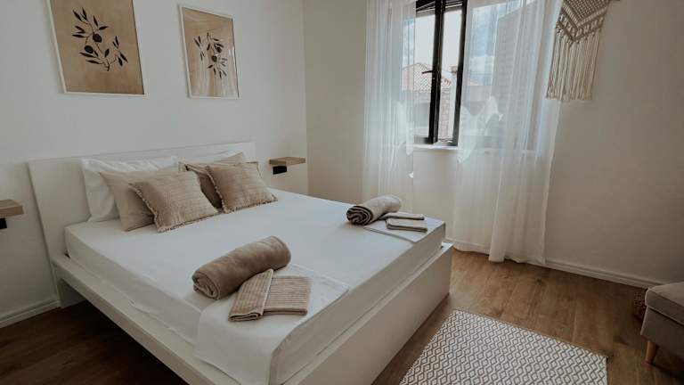 Die Ferienwohnung umfasst zwei Schlafzimmer und ein Wohnzimmer. Eine voll ausgestattete Küche mit Kühlschrank und Kaffeemaschine ist ebenfalls vorhanden. Es gibt zwei Badezimmer mit Dusche sowie kostenlosen Pflegeprodukten. Handtücher und Bettwäsche werden zur Verfügung gestellt. Die Wohnung ist klimatisiert und bietet zudem schallisolierte Zimmer.