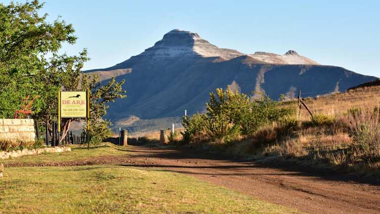 Die De Ark Mountain Lodge liegt 10 km von Clarens entfernt, in unmittelbarer Nähe des Rebellie 4wd-Trail. Der Nationalpark Golden Gate Highlands befindet sich 25 km entfernt, während Bethlehem 47 km entfernt ist. Die Anfahrt erfolgt über einen 4 km langen Feldweg, weshalb es empfohlen wird, ein hohes Fahrzeug oder eines mit Allradantrieb zu nutzen.