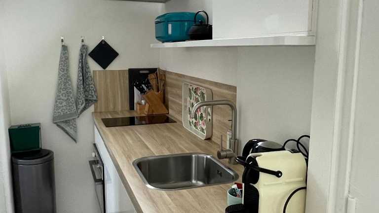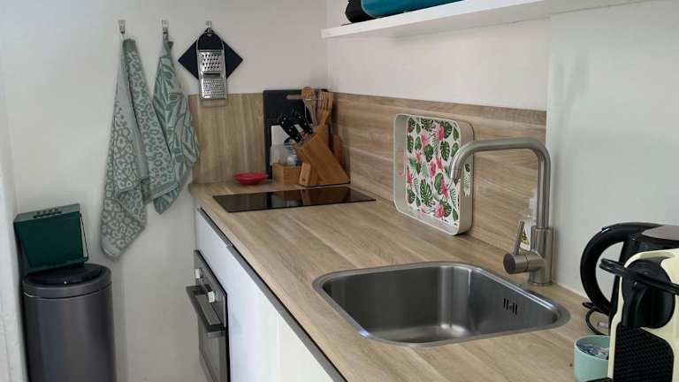 Die Ferienwohnung umfasst ein Schlafzimmer, ein Badezimmer und verschiedene Annehmlichkeiten wie Bettwäsche, Handtücher, einen Flachbild-TV mit Kabelkanälen, einen Essbereich sowie eine voll ausgestattete Küche. Zudem gibt es eine Terrasse mit Gartenblick, die ebenfalls Teil der Ausstattung ist.