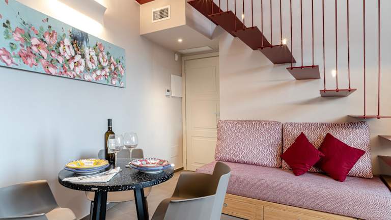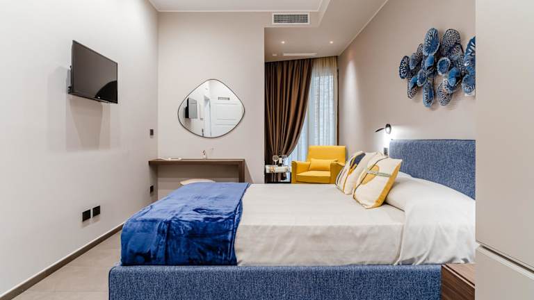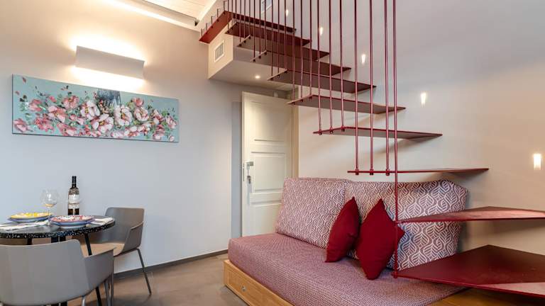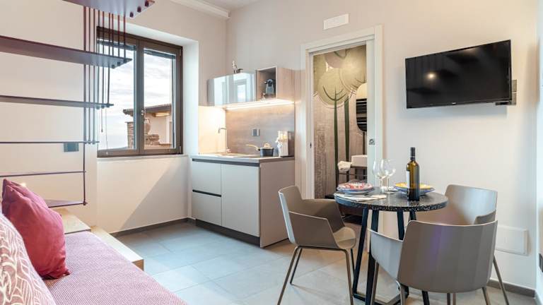 Die Wohneinheiten sind modern ausgestattet und verfügen über eigene Badezimmer mit Bidet, Klimaanlage, Flachbild-TV sowie Kühlschrank. Einige Einheiten bieten zusätzlich einen Balkon oder eine Veranda mit Blick auf die Stadt.