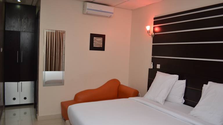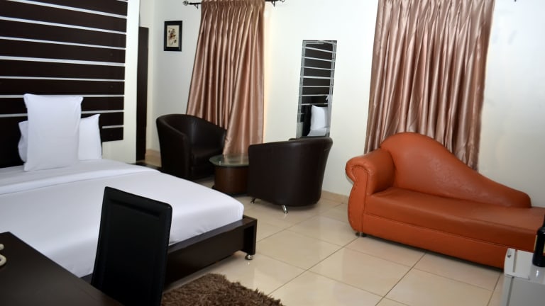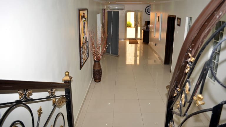 Die Unterkunft De Rigg Place - Alaka Estate in Surulere bietet Übernachtungsmöglichkeiten mit einem Aussenpool, einem kostenlosen Privatparkplatz, einem Fitnesscenter und einem Garten. Es stehen Zimmerservice, ein Restaurant sowie eine Terrasse zur Verfügung. Die Rezeption ist 24 Stunden besetzt und der Standort bietet einen Flughafentransfer.