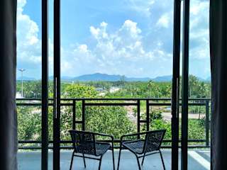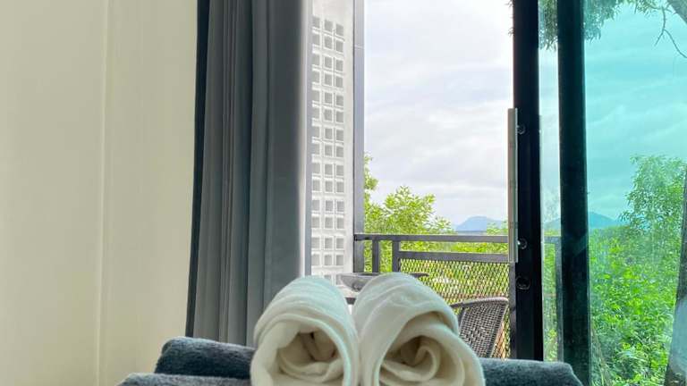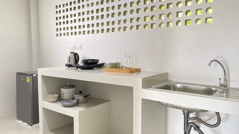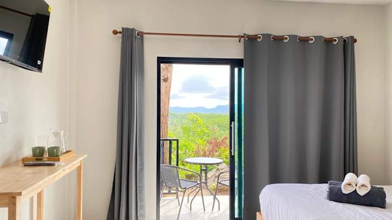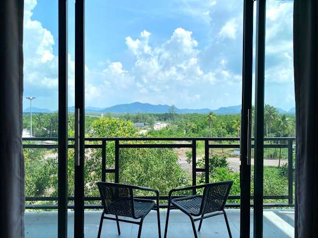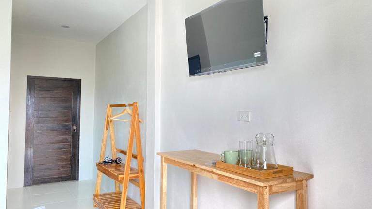 Die Zimmer in De Saran Lanta sind ausgestattet mit Klimaanlage, einem Schreibtisch, einem Flachbild-TV und einem eigenen Badezimmer. Zur weiteren Ausstattung gehören Bettwäsche, Handtücher und eine Terrasse mit Blick auf die Berge. Einige Zimmer verfügen zusätzlich über eine Küche mit Herdplatte und sind mit einem Kühlschrank sowie einem Wasserkocher ausgestattet.