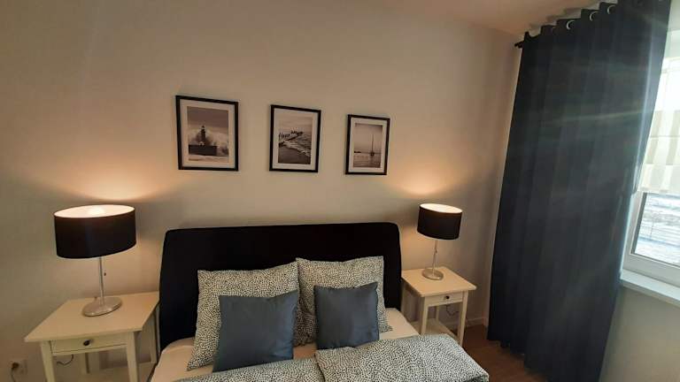 Die Ferienwohnung verfügt über ein Schlafzimmer, ein Wohnzimmer, eine voll ausgestattete Küche mit Kühlschrank und Kaffeemaschine sowie ein Badezimmer mit Dusche und Haartrockner. Handtücher und Bettwäsche werden zur Verfügung gestellt.