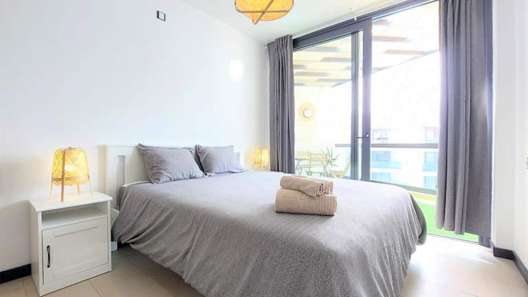 Die Ferienwohnung verfügt über ein Schlafzimmer und ein Badezimmer. Zur Ausstattung gehören Bettwäsche, Handtücher, ein Flachbild-TV, ein Essbereich und eine Terrasse mit Meerblick. Allergikerfreundliche Zimmer sind ebenfalls verfügbar.