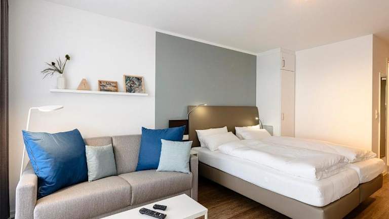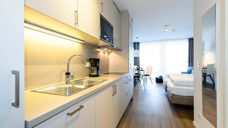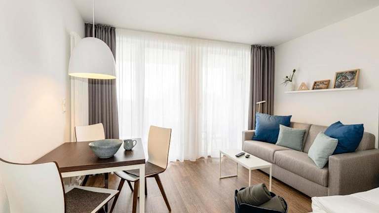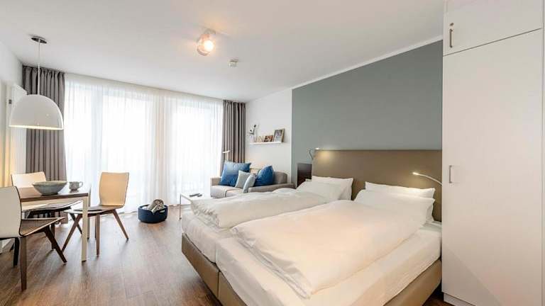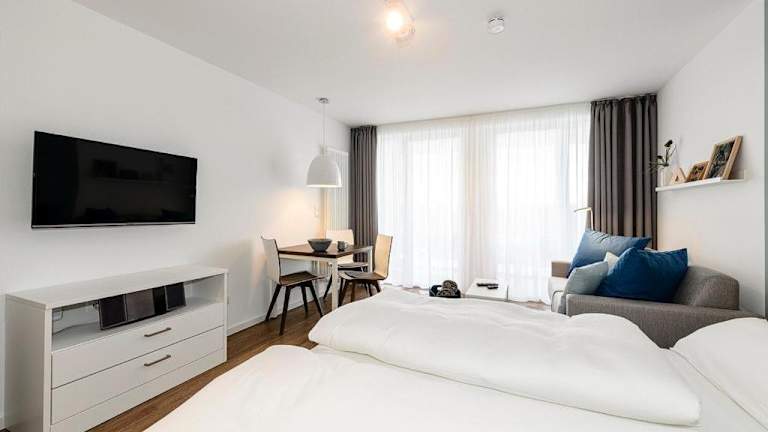 Die Ferienwohnung verfügt über ein Schlafzimmer, einen Flachbild-TV sowie eine Küche, die mit einem Kühlschrank und einem Geschirrspüler ausgestattet ist. Kostenloses Wifi steht zur Verfügung. Handtücher und Bettwäsche sind nicht im Preis enthalten, können jedoch gegen Aufpreis hinzugebucht werden. Alternativ besteht auch die Möglichkeit, diese selbst mitzubringen. Haustiere sind erlaubt, jedoch können möglicherweise Gebühren anfallen.