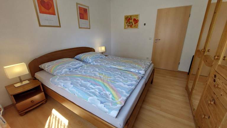 Die Ferienwohnung besteht aus einem Schlafzimmer, einem Wohnzimmer und einer voll ausgestatteten Küche. Diese ist mit einem Kühlschrank und einer Kaffeemaschine ausgestattet. Das Badezimmer verfügt über eine Dusche und einen Haartrockner. Zur Unterhaltung steht ein Flachbild-TV mit Satellitenkanälen, ein DVD-Player und ein CD-Player zur Verfügung.