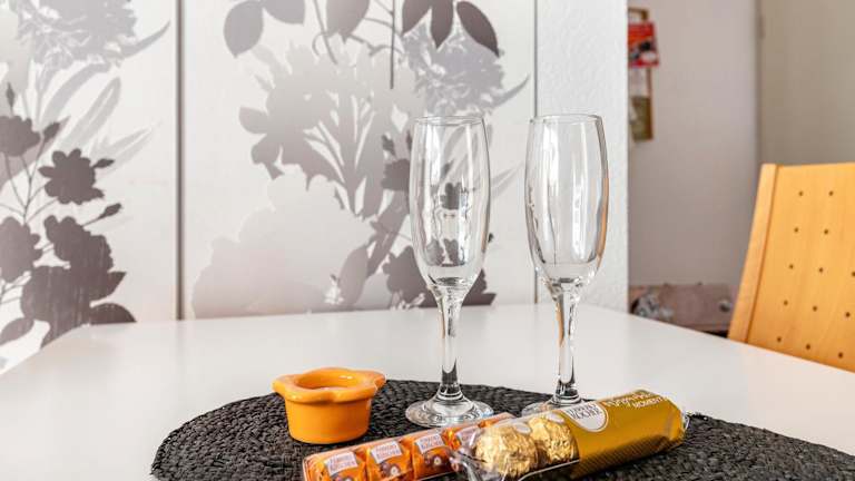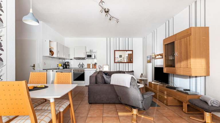 Die Ferienwohnung umfasst ein Schlafzimmer und ein Wohnzimmer, das mit einem TV mit Kabelkanälen ausgestattet ist. Die voll ausgestattete Küche beinhaltet einen Kühlschrank und einen Geschirrspüler. Ein Badezimmer mit Haartrockner ist ebenfalls vorhanden. Handtücher und Bettwäsche werden in der Unterkunft bereitgestellt.