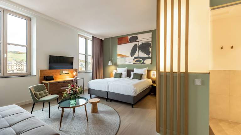 Das DEINHARD's in Bernkastel-Kues ist eine ideale Unterkunft für einen erholsamen Aufenthalt inmitten der Natur. Das Hotel bietet komfortable Zimmer mit moderner Ausstattung und einem eigenen Bad. Das Frühstück wird täglich serviert und bietet eine Auswahl an köstlichen Speisen. Entspannen Sie sich in der Sauna oder erkunden Sie die Umgebung mit den kostenfreien Leihfahrrädern. Das Hotel befindet sich in der Nähe des Naturparks Saar-Hunsrück und bietet eine gute Anbindung an den öffentlichen Verkehr.