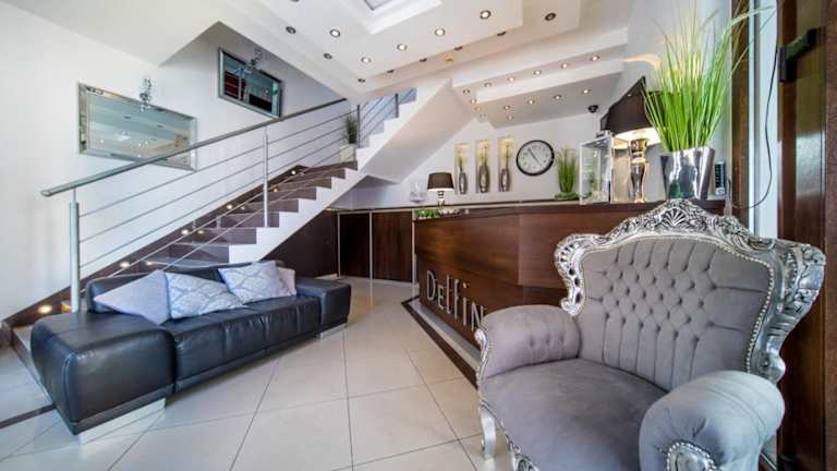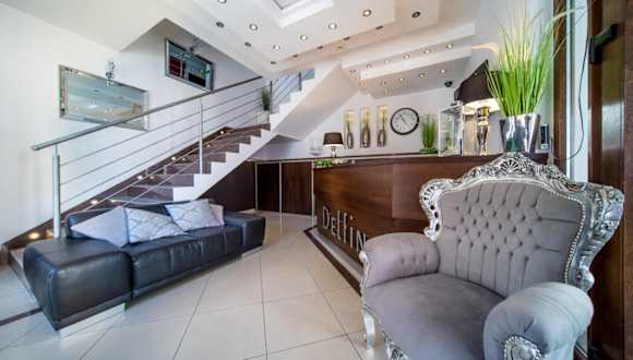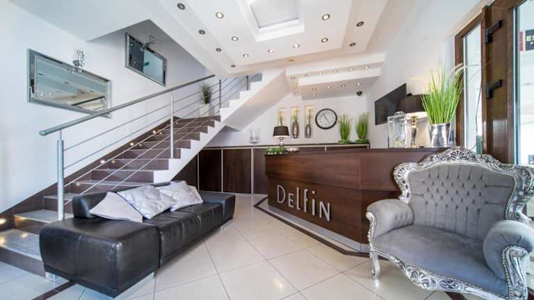 Das Hotel Delfin bietet Übernachtungsmöglichkeiten in einem gepflegten und angenehmen Ambiente. Die Unterkunft umfasst eine Terrasse oder einen Balkon, einen Garten und einen Spielplatz für Kinder. Zudem gibt es eine komplett ausgestattete Gemeinschaftsküche.