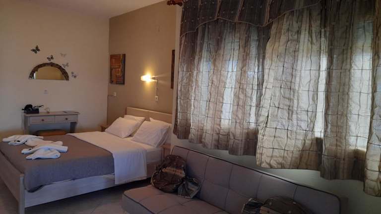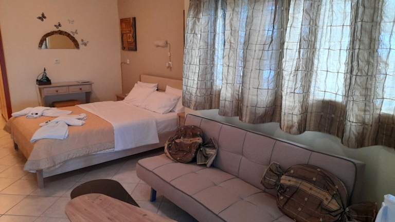 Die Unterkunft Delfini liegt in Akhladherí, nur 300 m vom Strand Korasida entfernt. Die Umgebung bietet Möglichkeiten zum Wandern und Angeln. Der nächste Flughafen, der Flughafen Skiros, ist 100 km entfernt.