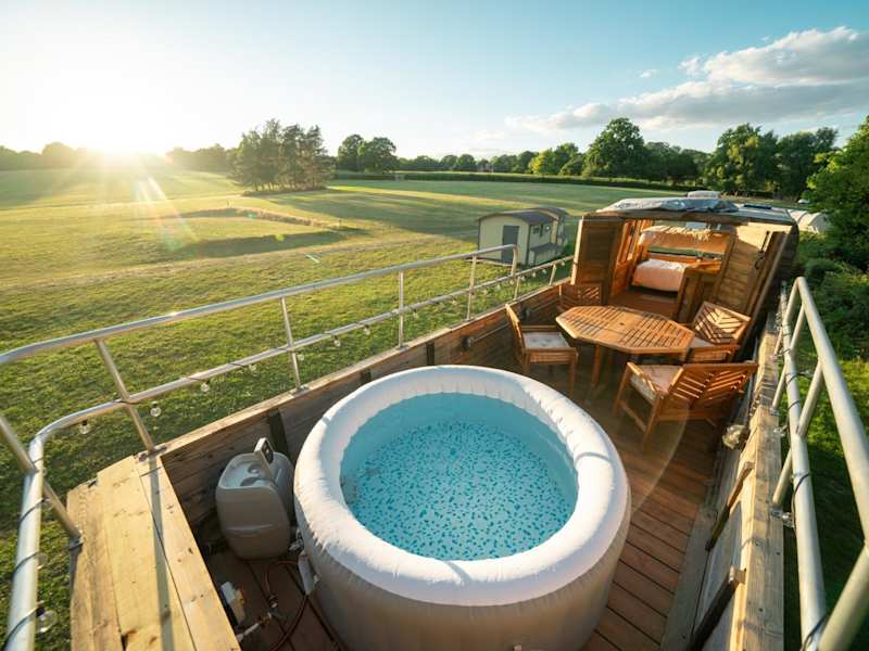 Die Delightful Converted Double Decker Bus mit Hot Tub bietet eine einzigartige Übernachtungsmöglichkeit in einem umgebauten Doppeldecker-Bus. Die Unterkunft hat einen Whirlpool und einen schönen Gartenbereich. Es gibt eine Terrasse zum Entspannen. Sie richtet sich an Gäste, die ein aussergewöhnliches Erlebnis suchen, mit einer ruhigen und heimeligen Atmosphäre.