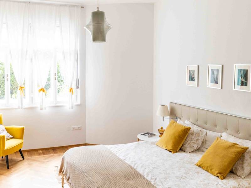 Entzückende Wohnung aus den späten 20er Jahren, kürzlich komplett renoviert, in einer ruhigen Wohngegend, nur 10 Gehminuten vom Zentrum von Meran entfernt. Sie verfügt über eine moderne Küche mit Balkon und Blick auf den hinteren Garten, ein großes Wohnzimmer mit Balkon gegen Süden, zwei Schlafzimmer, ein Badezimmer und ein separates Tages-WC. Die Wohnung ist ideal für ein oder zwei Paare sowie für Familien mit Kindern. Villa Rina liegt an einer Einbahnstraße inmitten einer schönen Wohngegend und bietet entspannte Gemütlichkeit bei maximaler Erreichbarkeit. Das Haus ist sowohl mit dem Auto (3 Minuten von der Ausfahrt Meran Zentrum) als auch mit dem Zug (7 Minuten zu Fuß vom Bahnhof entfernt) sehr leicht zu erreichen. Die Wohnung befindet sich im Erdgeschoss der Villa und erstreckt sich über mehr als 90 qm.