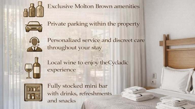 Die DelMar Suites Syros bieten eine komfortable und heimelige Unterkunft mit einem Garten und einer Sonnenterrasse. Zur Ausstattung gehören kostenloses WLAN sowie kostenloser Privatparkplatz. Die Hotelleitung erlaubt keine Junggesellen- oder ähnliche Feiern, um eine ruhige Atmosphäre zu gewährleisten. Die Unterkunft richtet sich an Gäste ab einem Mindestalter von 10 Jahren.