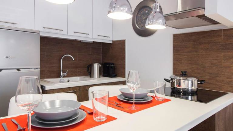 Die Ferienwohnung besteht aus 2 Schlafzimmern, einem Wohnzimmer und einer voll ausgestatteten Küche mit Kühlschrank und Kaffeemaschine. Es gibt 1 Badezimmer mit Dusche und kostenlosen Pflegeprodukten. Handtücher und Bettwäsche sind in der Ferienwohnung verfügbar.