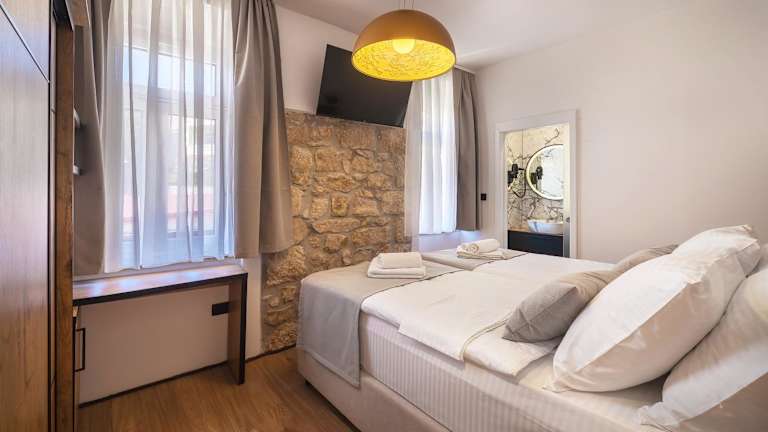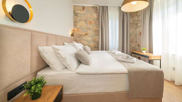 Das Deluxe Double Rooms in Castellum Besca befindet sich weniger als einen Katzensprung vom Strand Vela Baška und 900 m vom Strand Helena entfernt in Baška. Die Unterkunft liegt ca. 17 km vom Yachthafen Punat, 21 km vom Kosljun Franciscan Monastery und 1,8 km von der St. Lucy Kirche in Jurandvor entfernt. In der Nähe finden sich auch die Baška Bus Station, die Promenade Baška Riva und der Baška Port.