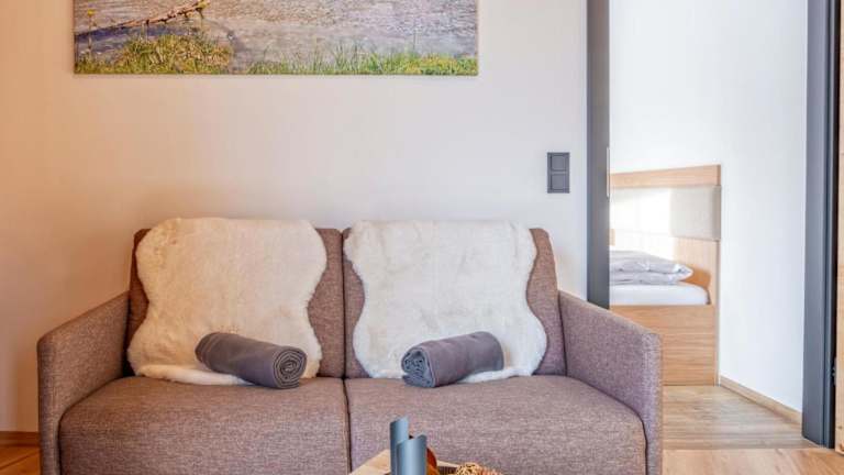 Die Ferienwohnung ist mit 2 Schlafzimmern ausgestattet und verfügt über eine Küche mit Kühlschrank und Ofen. Ein TV sowie ein Sitzbereich sind ebenfalls vorhanden. Das Badezimmer ist mit einer Dusche ausgestattet. Handtücher und Bettwäsche werden zur Verfügung gestellt.