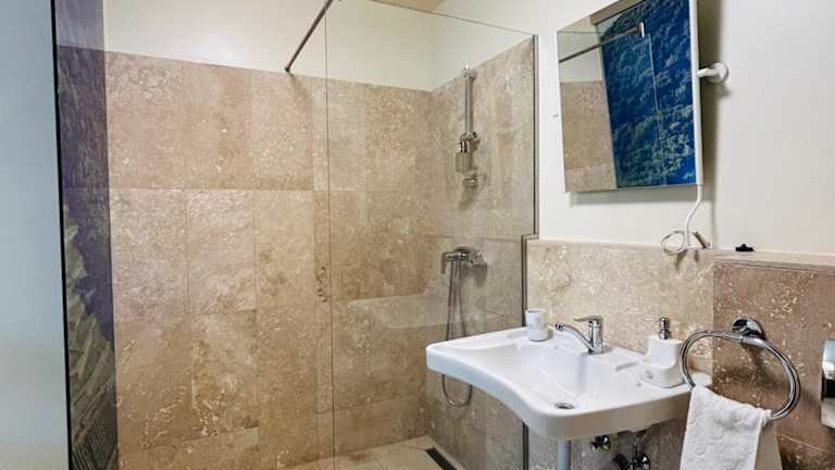Die Gästezimmer sind komplett ausgestattet mit einem eigenen Badezimmer, einer Dusche und einem Haartrockner. Einige Zimmer bieten einen Sitzbereich, während alle Zimmer mit einem Kühlschrank ausgestattet sind.