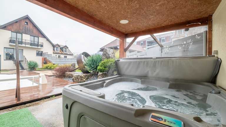 Die Villa beinhaltet drei Schlafzimmer, ein Wohnzimmer mit einem Satelliten Flachbild-TV, eine gut ausgestattete Küche und zwei Badezimmer mit Dusche und Whirlpool. Handtücher und Bettwäsche werden bereitgestellt. Die schallisolierten Zimmer sorgen für eine angenehme Bequemlichkeit während des Aufenthalts.