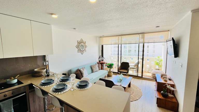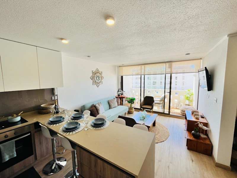 Das Departamento en Bahía Inglesa bietet eine voll ausgestattete Ferienwohnung mit kostenlosem Wifi und Kabelanschluss. Es verfügt über einen Aussenpool, einen Garten und eine Terrasse, die zum Entspannen einladen. Die Unterkunft hat eine 24-Stunden-Rezeption und bietet kostenlose Privatparkmöglichkeiten.