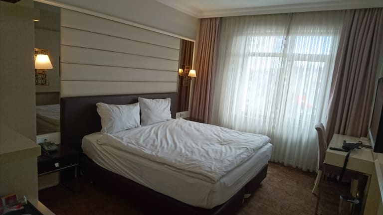 Das Dergah Hotel in Konya bietet eine ideale Lage und komfortable Zimmer für einen angenehmen Aufenthalt. Freuen Sie sich auf kostenfreies WLAN, eine Gemeinschaftslounge und eine Terrasse. Das 4-Sterne-Hotel verfügt außerdem über eine Bar und bietet einen Zimmerservice sowie eine 24-Stunden-Rezeption. Genießen Sie jeden Morgen ein Halal-Frühstück und erkunden Sie die beliebten Sehenswürdigkeiten der Stadt, die sich in der Nähe des Hotels befinden.