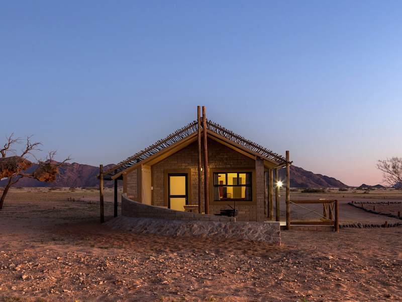 Das Desert Camp bietet Luxus-Unterkünfte zur Selbstverpflegung in der Wüste Namib. Die Anlage hat eine Gemeinschaftslounge mit TV-Bereich und einen Süsswasser-Aussenpool. Die Einrichtung ist Nichtraucherhotel. Check-in erfolgt ab 14:00 Uhr, und Check-out bis 10:00 Uhr. Die Unterkunft hat 28 Bungalows und wurde zuletzt 2018 renoviert.