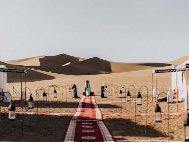Desert Luxury Camp Erg Chigaga befindet sich in El Gouera, einer malerischen Umgebung, die von der Schönheit der Wüste geprägt ist. Der Flughafen Zagora ist 155 km entfernt und somit gut erreichbar.
