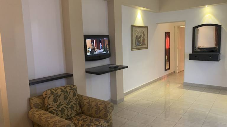 Das Desert View Sharm Hotel befindet sich in Um El Sid Cliff, 6 km von der Promenade Naema Bay entfernt. Das Meer ist nach einem 10-minütigen Spaziergang erreichbar. In der Nähe befinden sich zudem der Alte Markt, der traditionelle Waren verkauft.