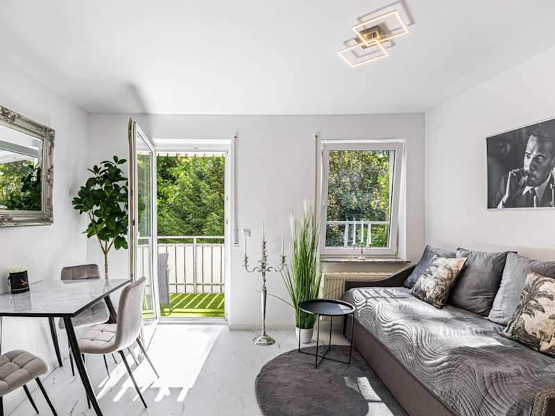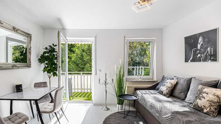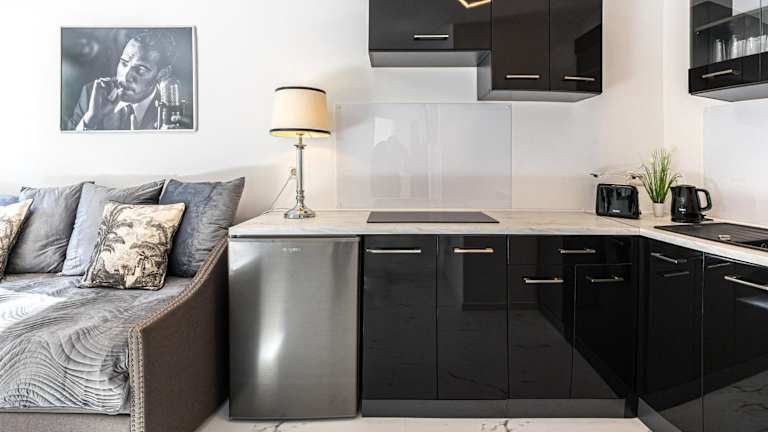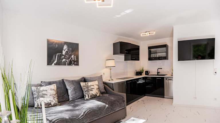 Das Apartment besteht aus einem Schlafzimmer, einem Wohnzimmer und einer voll ausgestatteten Küche, die unter anderem über einen Kühlschrank und eine Kaffeemaschine verfügt. Ein Badezimmer mit Dusche und Haartrockner ist ebenfalls vorhanden. Handtücher und Bettwäsche werden zur Verfügung gestellt. Ein Balkon verlängert die Bequemlichkeit des Wohnraums.