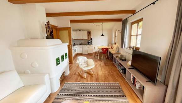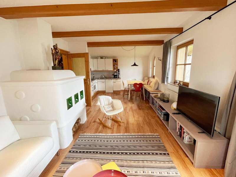 Die Ferienwohnung umfasst ein Schlafzimmer, ein Wohnzimmer mit Flachbild-TV, eine gut ausgestattete Küche mit Kühlschrank und Geschirrspüler sowie ein Badezimmer mit Badewanne. Ein Balkon mit Bergblick ist ebenfalls vorhanden. Handtücher und Bettwäsche werden bereitgestellt.