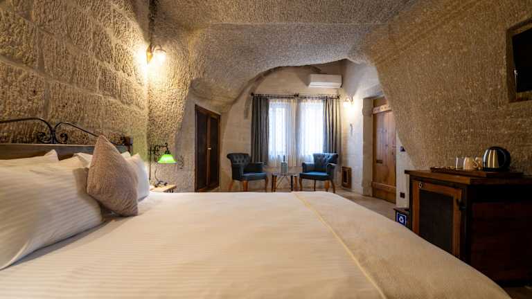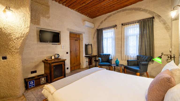 Die Zimmer im Design Cappadocia Hotel sind modern und komfortabel eingerichtet. Jedes Zimmer verfügt über eine Klimaanlage, einen Schreibtisch, einen Wasserkocher, einen Kühlschrank, einen Safe, einen Flachbild-TV und ein eigenes Bad mit einem Bidet. Die Zimmer sind mit Bettwäsche und Handtüchern ausgestattet und bieten alles, was Sie für einen angenehmen Aufenthalt benötigen.