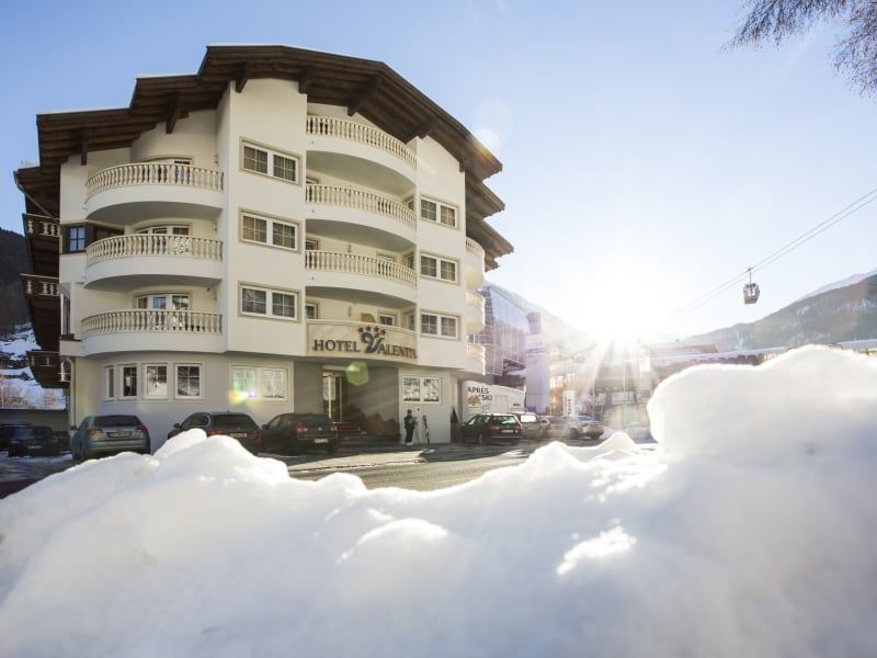 Wir erwarten Sie mit einem außerordentlich freundlichen Service für Ihren Winterurlaub in Sölden. GASTFREUNDSCHAFT wird bei uns groß geschrieben. Inklusivleistungen: - Begrüßungsgetränk inklusive Informationsgespräch bei Ihrer Ankunft für den idealen Start in den Urlaub - 1 Flasche Mineralwasser am Zimmer bei Ankunft - 48 hochmoderne Zimmer mit attraktiver Innenarchitektur, viel Stein und Holz und vorallem hochbequeme Boxspringbetten (bei Bedarf können die Betten auch auseinandergestellt werden) - Beste Lage nur 30 m von der Talstation der Gaislachkoglbahn entfernt. Genießen Sie die Vorteile eines autofreien Urlaubs - ¾ Pension: Reichhaltiges Buffetfrühstück von 7:30 bis 10:00, Nachmittagsjause (Tiroler Marend) von 15:00-16:30, 5 Gang Gourmet Wahlmenü - Gratis WLAN im gesamten Haus - Freie Benützung unseres Sauna- & Relaxbereichs: Finnische Sauna, Biosauna, Dampfbad und Infrarotkabine mit Tiefenwärme, Eisbrunnen, Handtücher, Sitz- & Liegebereich, Wasserbetten, Kaminfeuer, Wellness- & Vitalbüffet mit frischem Obst, Trockenfrüchte, Tee & Säfte. Achtung: Kinder können erst mit 14 Jahren und in Begleitung eines Erwachsenen diesen Bereich des Hotels betreten - Wellnesstasche inklusive flauschiger Bademantel und Badeslipper leihweise für die Dauer Ihres Aufenthalts - Kostenloser Parkplatz vor dem Hotel oder auf unsere reservierten Parkplätze in der Gaislachkoglgarage (wenige Meter vom Hotel entfernt) - Kaufen Sie Ihre Skipässe direkt an der Kasser der Gaislachkoglbahn 30m vom Hotel Valentin. - Ski- & Boardverleih, Service & professionelle Beratung direkt im Hotel in Zusammenarbeit mit unserem Partner Intersport Glanzer. Sichern Sie sich schon jetzt 15,0% Rabatt und reservieren Sie Ihr Equipment online unter www.glanzer.at. Vor Ort erhalten Sie als unsere Gäste 10,0% Rabatt auf Sportartikelverleih. Kostenloses Ski- & Boardepot in allen "Glanzer" Filialien rund um Sölden - Entdecken Sie das Ötztal mit gratis Busverbindungen direkt vor dem Hotel. Unsere Mitarbeiter informieren Sie gerne - Kleines Abschiedsgeschenk damit wir Ihnen auch auf den Heimweg in guter Erinnerung bleiben. - Frühabreiser erhalten selbstverständlich ein Lunchpaket für unterwegs