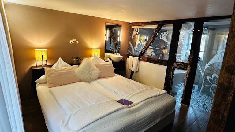 Quartieren Sie sich im 4-Sterne Designhotel Die Träumerei ein und entdecken Sie die Stadt Michelstadt und ihre Umgebung. Die Gäste haben diesem Haus das Siegel HolidayCheck Quality Selection 2014 verliehen. Interessante Attraktionen sind von der Unterkunft aus in kürzester Zeit erreichbar, wie beispielsweise das Schloss Fürstenau, das Schloss Erbach, das Motorrad Museum sowie das Gräfliches Wildgehege. Essen & Trinken Zahlreiche Gasthäuser um das Haus herum bieten Ihnen Bewirtungsmöglichkeiten. Bloß einen Kilometer vom Designhotel Die Träumerei entfernt befindet sich das Café Leyhausen.