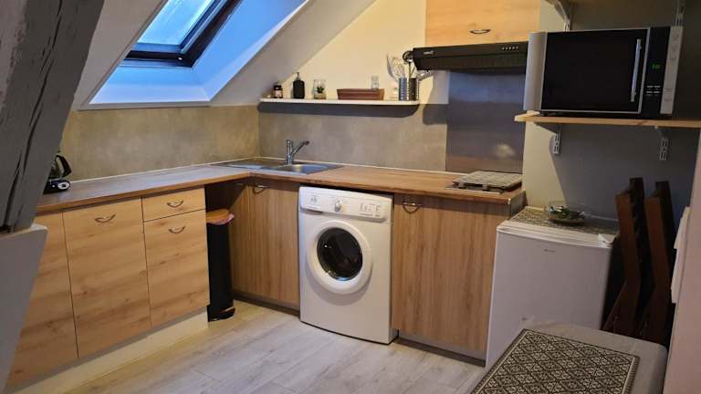 Die Ferienwohnung besteht aus einem Schlafzimmer, einem Wohnzimmer und einer voll ausgestatteten Küche, die mit einem Kühlschrank und einer Kaffeemaschine ausgestattet ist. Zudem gibt es ein Badezimmer mit einer Dusche und einem Haartrockner. Handtücher und Bettwäsche werden bereitgestellt.