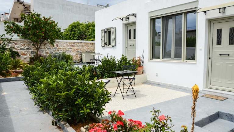 Deus Apartments_ Athens Airport bietet Übernachtungsmöglichkeiten mit kostenlosem WLAN, klimatisierten Räumen und Zugang zu einem Garten. Die Unterkunft verfügt über eine Terrasse mit Stadtblick sowie einen Sitzbereich.