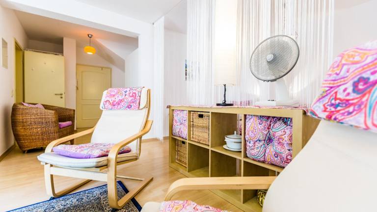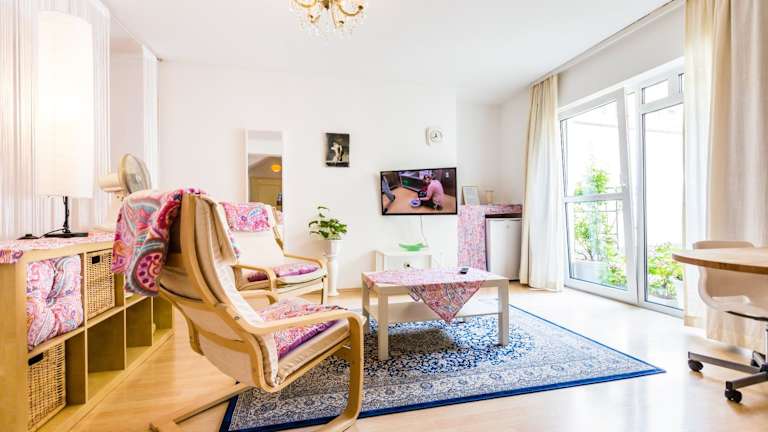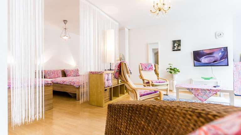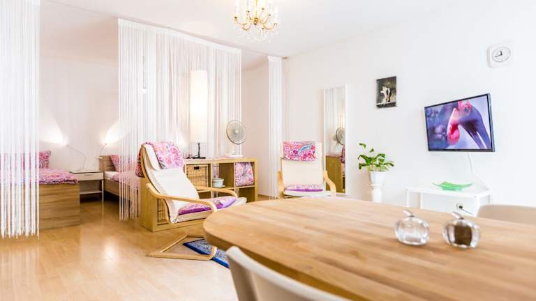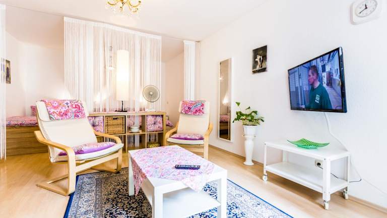 Die Ferienwohnung beinhaltet ein Schlafzimmer, ein Wohnzimmer sowie eine voll ausgestattete Küchenzeile mit Kühlschrank und Kaffeemaschine. Zudem stehen 1 Badezimmer mit Dusche und kostenlosen Pflegeprodukten zur Verfügung. Handtücher und Bettwäsche sind ebenfalls in der Wohnung vorhanden.