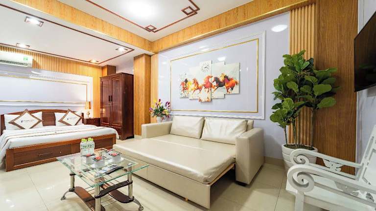 Das Diamond Luxury Ben Thanh befindet sich im Stadtbezirk 1 von Ho-Chi-Minh-Stadt, nur 150 Meter vom Museum der Schönen Künste entfernt. Der Ben-Thanh-Markt liegt 300 Meter entfernt, während der Palast der Wiedervereinigung nach 900 Metern erreichbar ist. Der internationale Flughafen Tan-Son-Nhat ist 7 Kilometer entfernt.