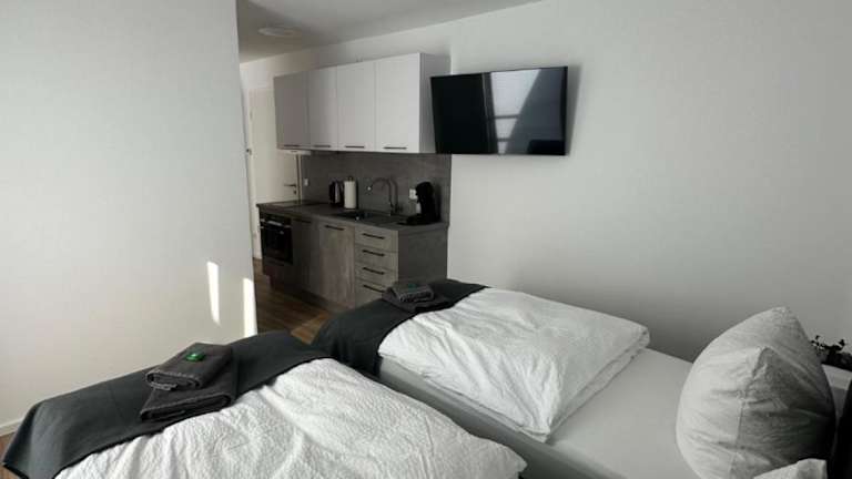 Jede Wohneinheit ist mit einer voll ausgestatteten Küche, einem Esstisch, einem Flachbild-TV mit Satellitenkanälen sowie einem eigenen Badezimmer ausgestattet. Zu den Annehmlichkeiten gehören ein Kühlschrank, ein Geschirrspüler, ein Ofen, eine Kaffeemaschine und ein Wasserkocher. Die Ausstattung bietet Bequemlichkeit für einen angenehmen Aufenthalt.
