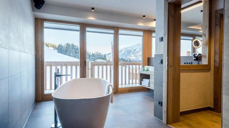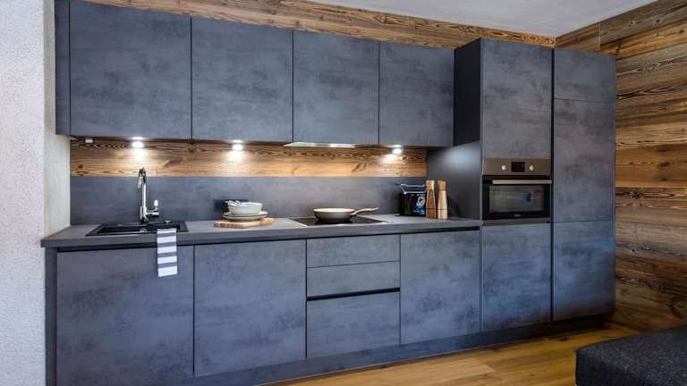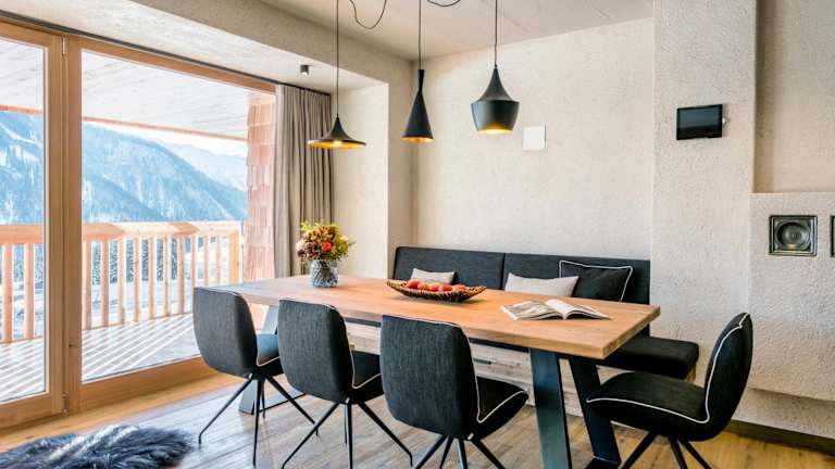 Die Wohneinheiten sind modern ausgestattet und verfügen über einen Balkon mit Bergblick, einen Sitzbereich, einen Kabel Flachbild-TV sowie eine voll ausgestattete Küche mit Kühlschrank und Geschirrspüler. Die eigenen Badezimmer sind mit Dusche, Badewanne und kostenlosen Pflegeprodukten ausgestattet. Bademäntel liegen ebenfalls bereit.