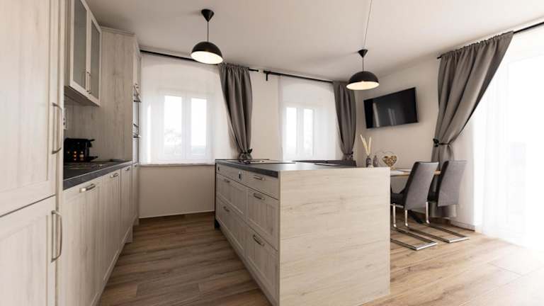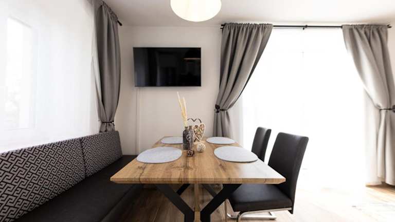Die Zimmer verfügen über einen Sitzbereich, einen Satelliten Flachbild-TV und eine voll ausgestattete Küche mit Kühlschrank, Geschirrspüler, Ofen, Mikrowelle, Herdplatte, Kaffeemaschine und Wasserkocher. Zudem sind ein eigenes Badezimmer mit Dusche und Haartrockner vorhanden.