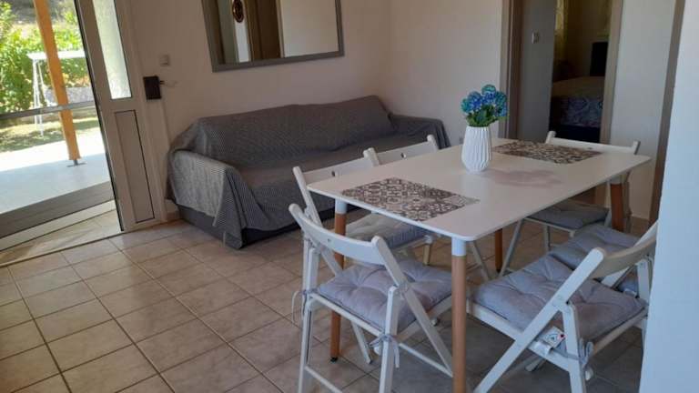 Das Ferienhaus bietet 2 Schlafzimmer, ein Wohnzimmer mit einem Flachbild-TV, eine gut ausgestattete Küche mit Kühlschrank und Ofen sowie 1 Badezimmer mit Dusche. Handtücher und Bettwäsche werden bereitgestellt.
