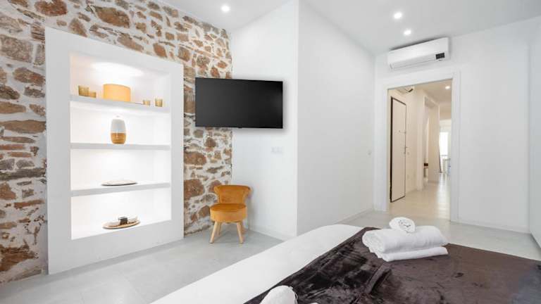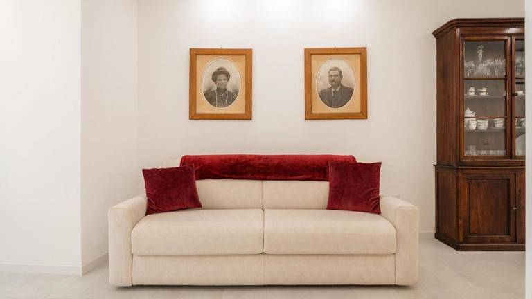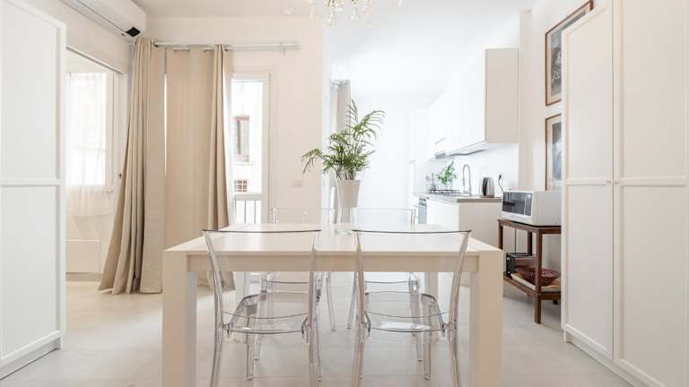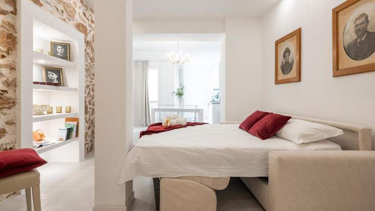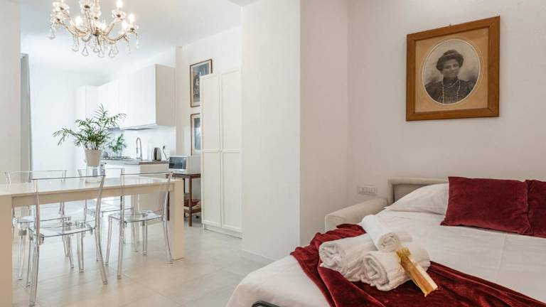 Die Ferienwohnung verfügt über ein Schlafzimmer, ein Wohnzimmer sowie eine voll ausgestattete Küchenzeile mit Kühlschrank und Kaffeemaschine. Zudem sind ein Badezimmer mit Bidet und Dusche vorhanden. Handtücher und Bettwäsche sind ebenfalls verfügbar.