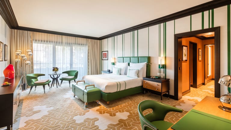 Die Zimmer sind klimatisiert und verfügen über ein Kingsize-Bett sowie eine Minibar und eine Tee-/Kaffeemaschine. Es sind auch Zustellbetten auf Anfrage erhältlich. Jedes Zimmer ist mit Hausschuhen ausgestattet und verfügt über ein eigenes Badezimmer mit Dusche und Badewanne, Haartrockner sowie Bademäntel. Alle Unterkünfte bieten einen Balkon oder eine Terrasse.
