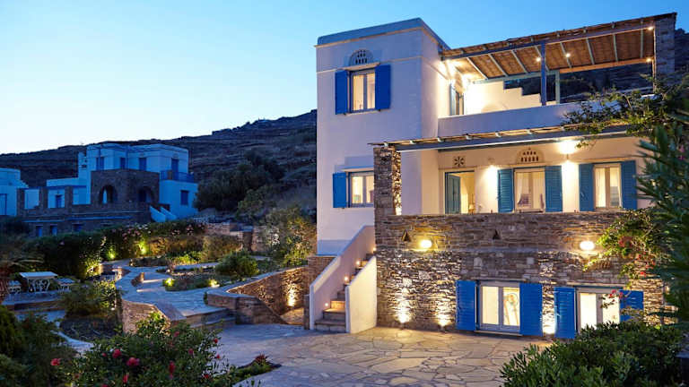 Die Dinora Villa befindet sich in Agios Ioannis, ungefähr 2,6 km vom Strand Pachia Ammos entfernt und nur 400 m vom Strand Agios Sostis. Die Umgebung bietet einen herrlichen Garten und eine ruhige Lage mit Meerblick.
