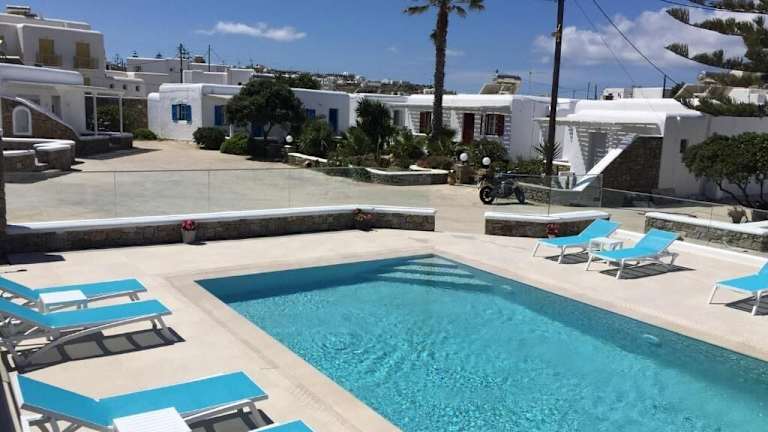 Die Diogenis Studios befinden sich in Glastros, in der Nähe des berühmten Strands Psarrou, welcher nur 700 m entfernt liegt. In der Umgebung finden Gäste einen Supermarkt, eine Bushaltestelle und verschiedene Tavernen nach lediglich 50 m. Weitere Strände wie Platys Gialos sind 900 m entfernt, während die Stadt Mykonos in 1,8 km Entfernung liegt. Der internationale Flughafen Mykonos ist 2 km und der Hafen von Mykonos 3,5 km entfernt.
