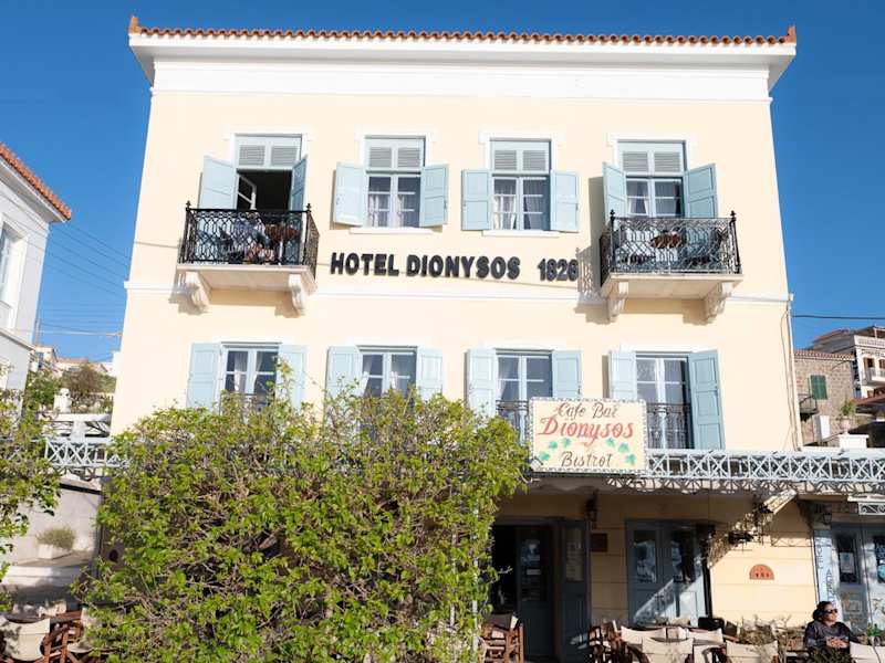 Das Hotel Dionysos in Poros bietet seinen Gästen eine gemütliche Unterkunft direkt an der Küstenstraße. Die Zimmer sind komfortabel eingerichtet und verfügen über kostenfreies WLAN. Genießen Sie den Blick auf das Meer und den Hafen von Ihrem Balkon aus. Das Hotel verfügt über eine Frühstückslounge und ein Café mit Snackbar, in dem Sie Getränke und kleine Mahlzeiten genießen können. Nutzen Sie den Fahrrad- und Autoverleih an der Rezeption, um die Umgebung zu erkunden.