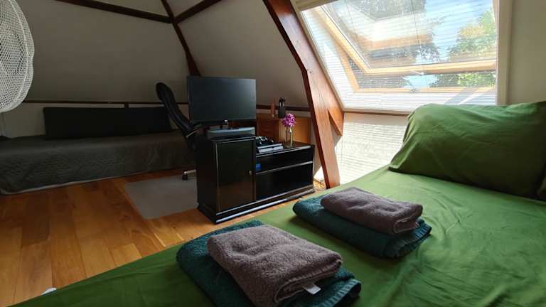 Das Privatzimmer ist mit einem Flachbild-TV ausgestattet und es werden Handtücher sowie Bettwäsche bereitgestellt.