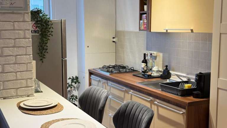 Die Ferienwohnung ist mit einer voll ausgestatteten Küche ausgestattet, in der Gäste ihre eigenen Mahlzeiten zubereiten können. Lebensmittellieferung ist ebenfalls möglich (zusätzliche Gebühren können anfallen).